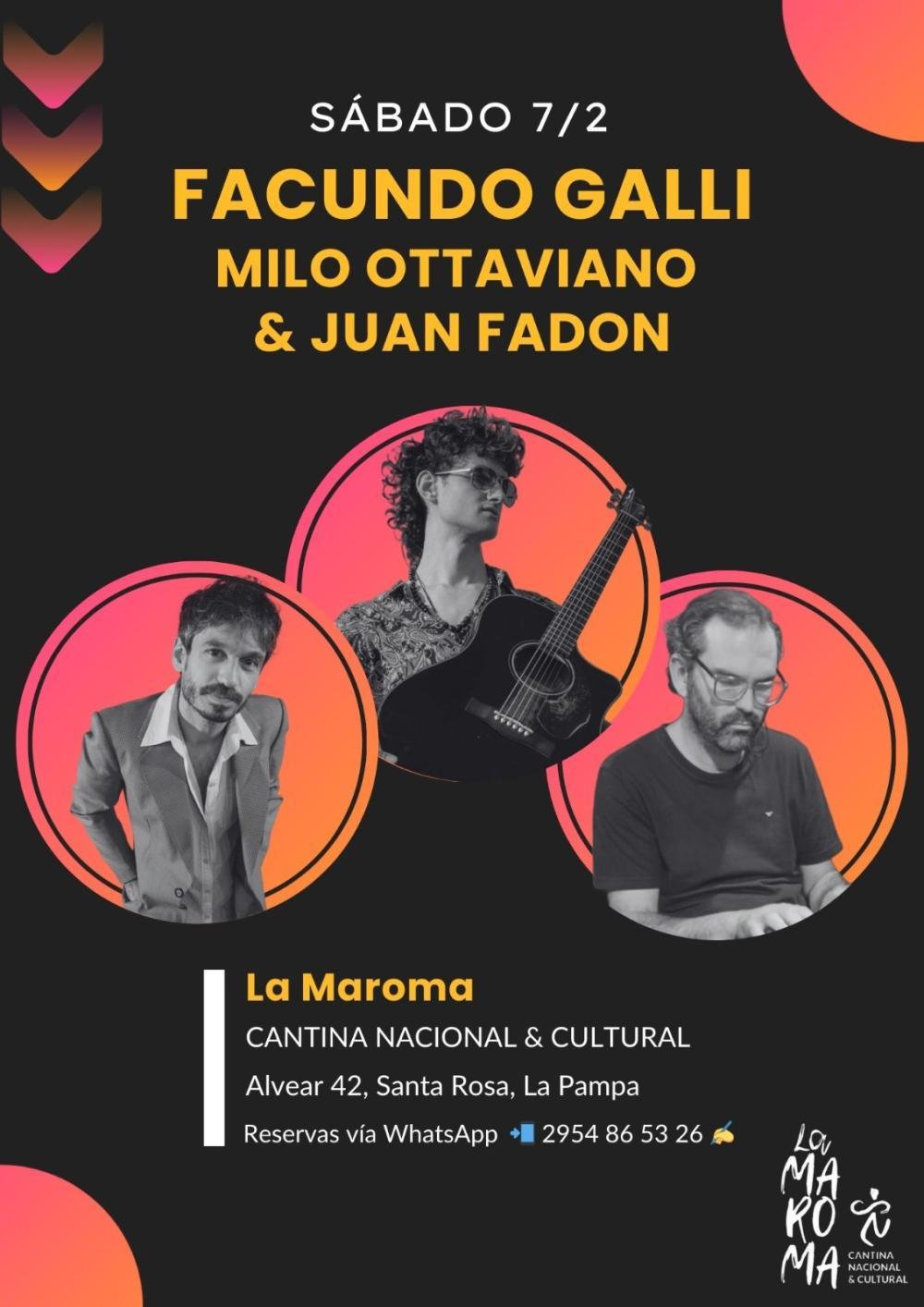Facundo Galli es un cantautor argentino nacido en la ciudad de Mar del Plata y residente en Capital Federal. El estilo de sus canciones combina elementos del pop y rock argentino, así como también influencias de la trova y el folclore latinoamericano.