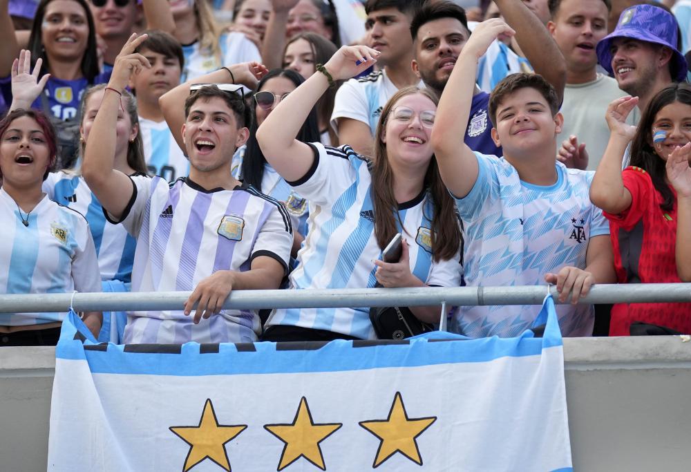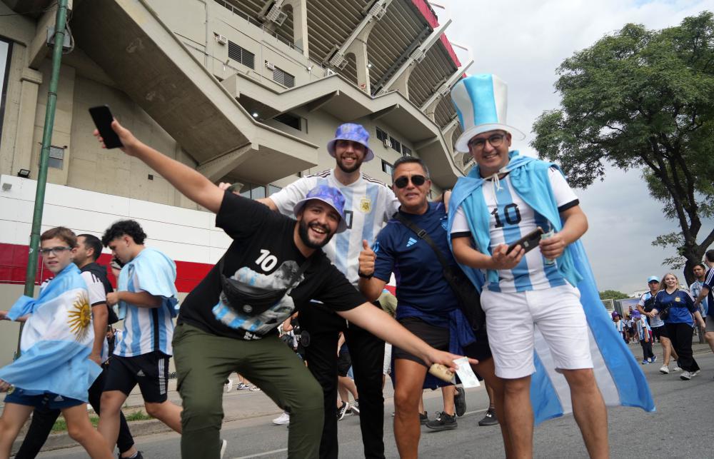 Con la presencia del DJ Fer Palacios, el primero en hacer el calentamiento -con baile incluido a pedido de la gente- fue Emiliano "Dibu" Martínez, mientras que a los pocos minutos apareció el resto de los jugadores y la hinchada se rindió a lo pies del astro Lionel Messi, quien no fue el único de su familia ovacionado dado que antes pisaron el campo sus tres hijos, Thiago, Mateo y Ciro, junto a la esposa de la "Pulga", Antonela Roccuzzo, y los seres queridos de los demás protagonistas.