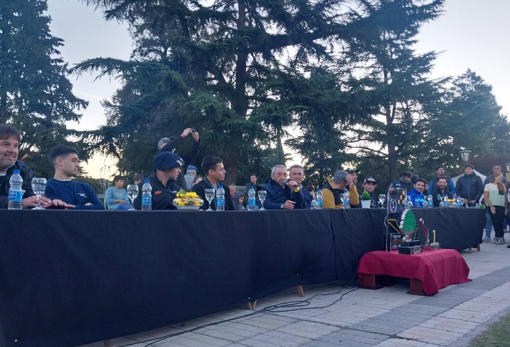 En la Plaza San Martín de Toay, frente a la Iglesia, y en una larga mesa, estuvieron el propio Mazzacane, el intendente Ariel Rojas, el presidente del Fideicomiso, Sergio Pereda, el Secretario de Turismo Saúl Etcheveste, y los pilotos.