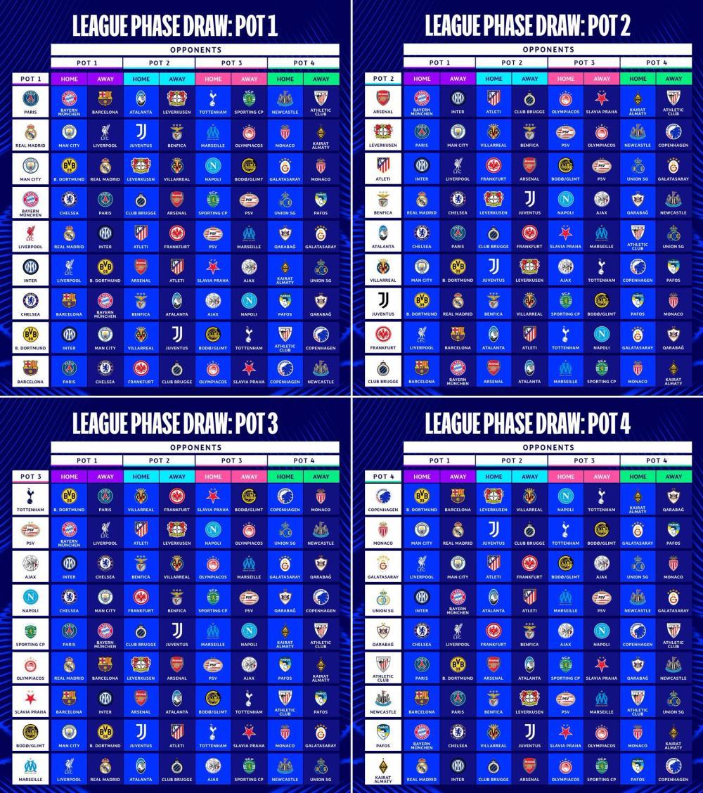 El nuevo formato de la Champions League, implementado desde la temporada pasada, modificó radicalmente la estructura inicial del certamen. Los 36 equipos clasificados ya no se distribuyen en grupos de cuatro, sino que forman parte de una única tabla de posiciones.