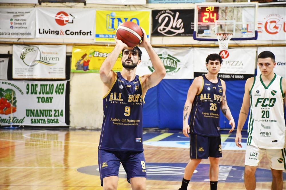 All Boys de Santa Rosa se impuso por 75 a 67 en el primer juego de la serie final ante Ferro de Pico para determinar al campeón del Torneo Pre Federal de Básquetbol. El partido se disputó en la capital pampeana y ahora el Auriazul podrá festejar cuando visite a este mismo rival mañana domingo a partir de las 21 horas. En caso de necesitarse un tercer encuentro se jugará el próximo martes en el José Aquiles Regazzoli.