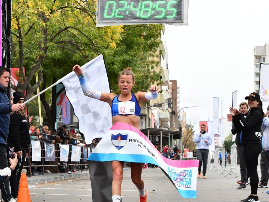 Entre las damas, el triunfo fue para la trenquelauquense Angelina Reyes, quien recorrió los 42 kilómetros en 2:48:50. Nadia Otero fue la mejor pampeana y se quedó con el segundo lugar del podio.