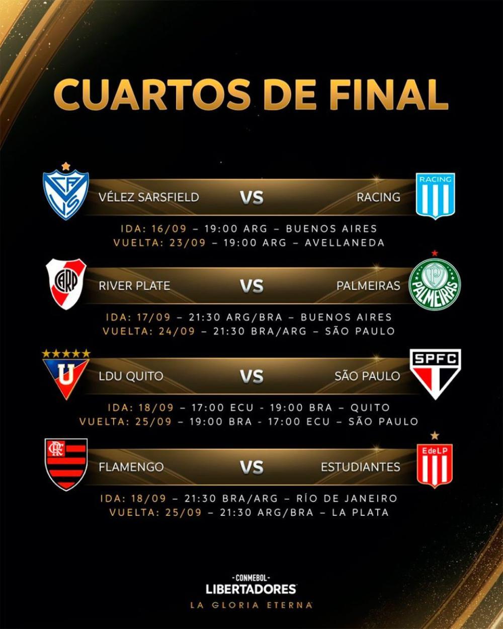 La Conmebol oficializó este viernes el cronograma de los cuartos de final de la Copa Libertadores 2025, que tendrán fuerte presencia argentina con cuatro equipos en carrera.