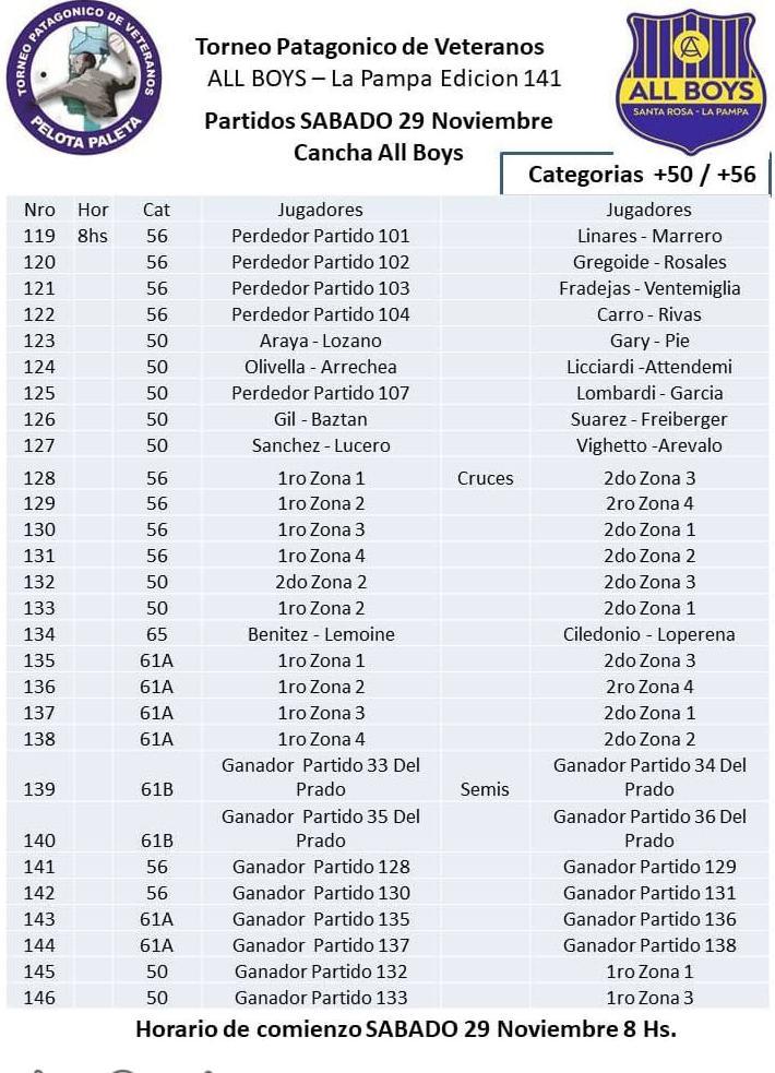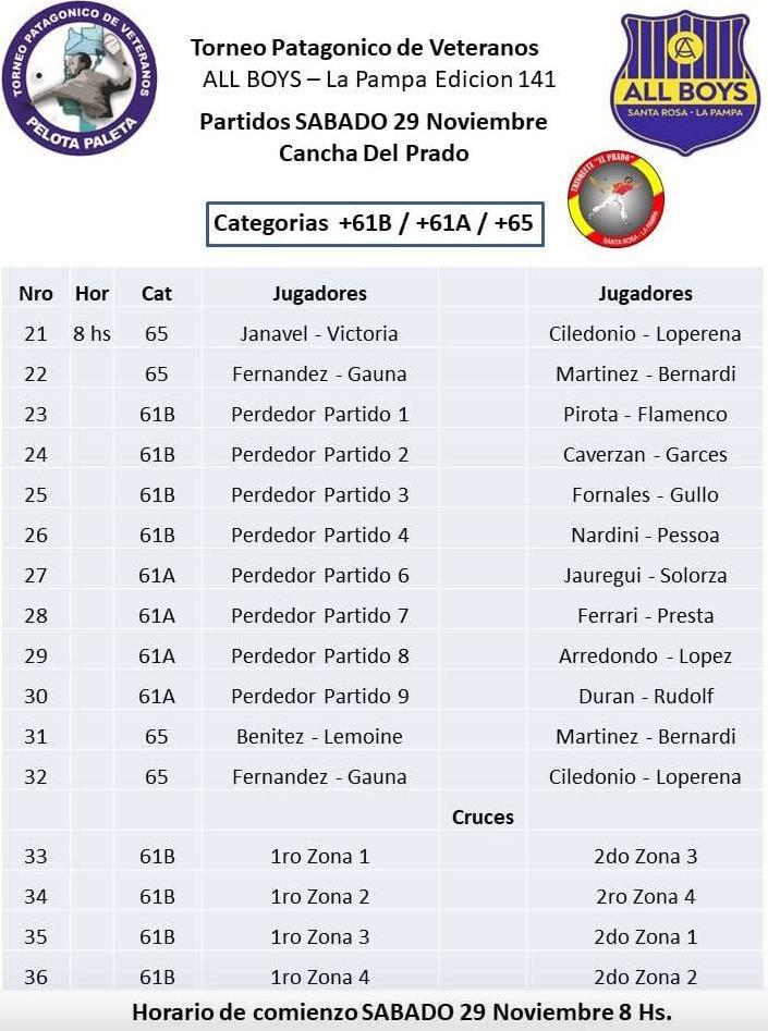 Durante la presentación de las obras, la subcomisión de Pelota Paleta confirmó que All Boys y El Prado Español serán sede de la fecha decisiva del Patagónico, que se desarrollará el último fin de semana de noviembre. El cronograma interno establece actividad en ambas canchas, con los partidos clasificatorios distribuidos por categorías y la definición de semifinales y finales en la jornada central del torneo.