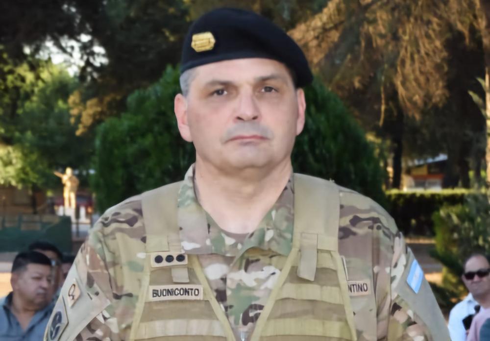 En el mismo marco se presentó la hoja de servicios del nuevo comandante. Buoniconto participó en misiones de paz de la ONU en Croacia y Chipre. Egresó del Colegio Militar de la Nación en 1992 y se desempeñó en unidades operativas como el Regimiento de Infantería Paracaidista 2 y el Regimiento 1 "Patricios". También tuvo destinos educativos y funciones de conducción. Además, posee aptitudes de paracaidista militar obtenidas en Argentina, Estados Unidos, Italia y Colombia, y cuenta con especializaciones en mecanizados y combate.