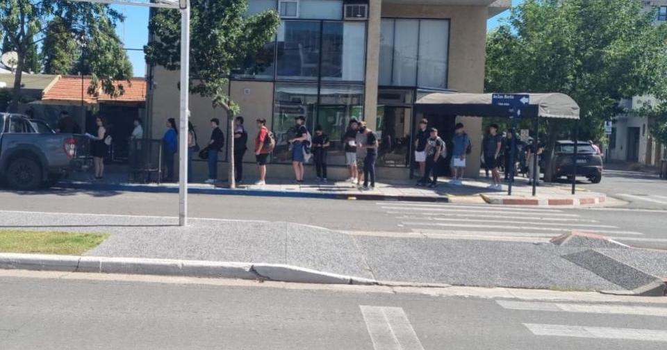 Símbolo de los tiempos. Una larga fila de jóvenes buscando trabajo en Santa Rosa, a partir de la oferta de un "jardín cervecero". La falta de trabajo, a la luz del día.