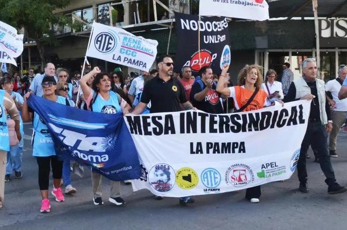 La marcha de la bronca. La Multisectorial Sindical se movilizó en Santa Rosa el viernes, en rechazo a la reforma laboral. Fuerte contrapunto con legisladores libertarios y aliados.