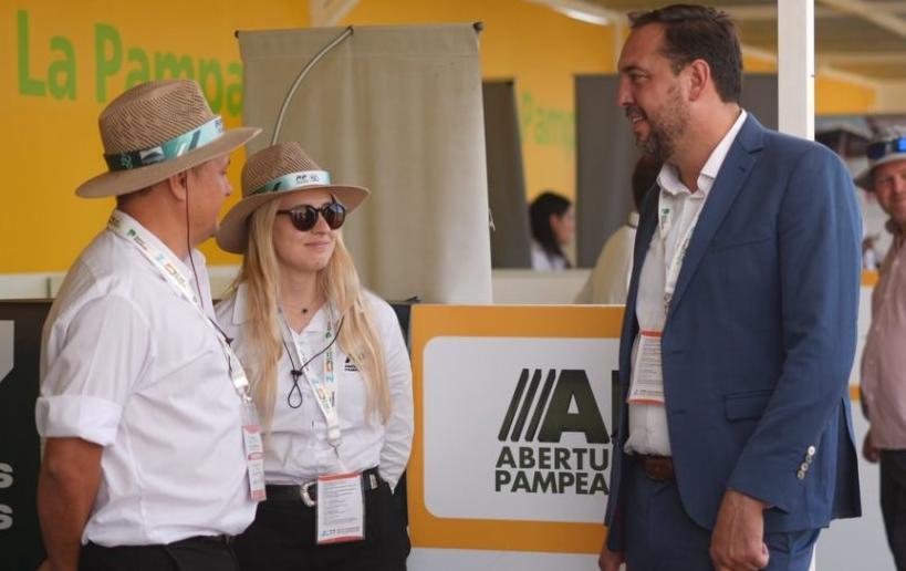 Expocandidato. El intendente Luciano di Nápoli se probó el traje de candidato a gobernador en su visita a la Expoagro 2026, donde hizo propuestas provinciales para el sector de la producción rural.
