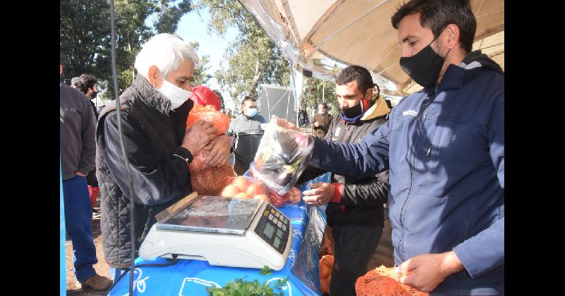 Este sábado el municipio montó dos carpas: si bien hubo mucha concurrencia, también se notó más espacio. El intendente Luciano di Nápoli, junto a la secretaria de Desarrollo, Carmina Besga, realizaron una recorrida por los puestos a mitad de mañana.