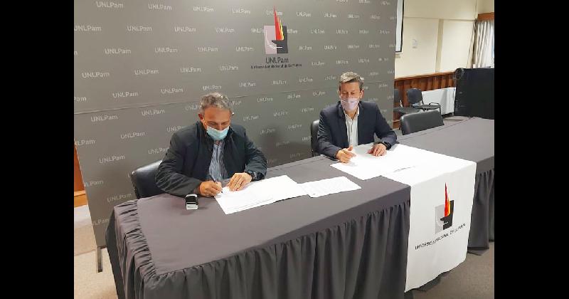 El rector de la Universidad Nacional de La Pampa, Oscar Alpa, firmó el contrato de obra pública correspondiente a la construcción de aulas y auditorios del Centro Universitario de Santa Rosa, tramitado por Luis Pablo Pessi en representación de la firma E.Co.P. Construcciones SRL.
