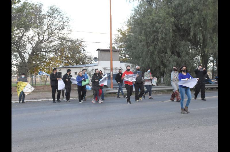 En ese trayecto, los manifestantes lograron sortear el retén policial ubicado sobre la avenida Spinetto y siguieron rumbo a la Ruta 35 por una calle paralela. Unas 16 personas en total -según pudo corroborar este diario, presente en el lugar- llegaron hasta el portón de ingreso, donde pegaron algunas pancartas.