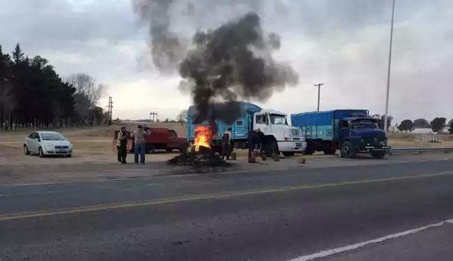 Según detalló el portal Infotec, en la noche de este martes, se habían reunido más de medio centenar de camiones reunidos. Hubo quema de cubiertas en un buen clima anímico.