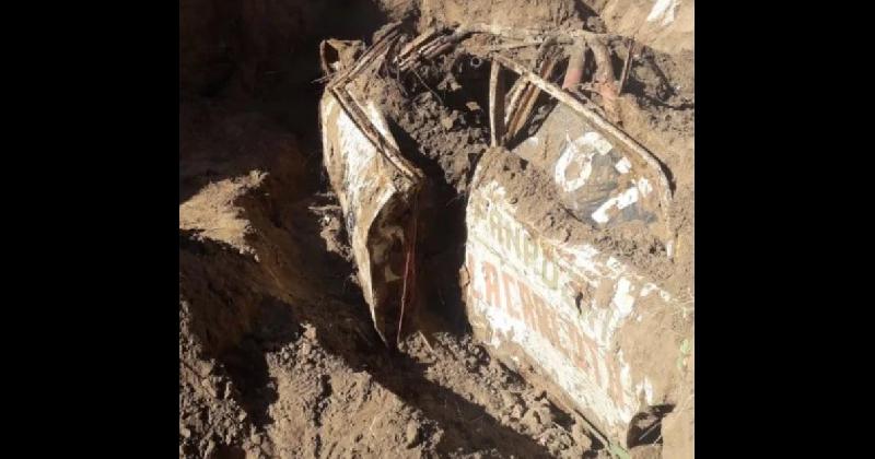 “Obreros que estaban excavando para colocar una pileta en los patios de una casa, ubicada en Calle Moreno de Toay (entre Boulevard Brown y San Luis), hallaron un auto enterrado”, escribió Vigne en su muro de Facebook.