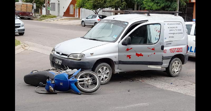 El conductor de un utilitario y una motociclista protagonizaron este martes a la mañana un fuerte siniestro vial en el barrio Villa Santillán, de esta ciudad.