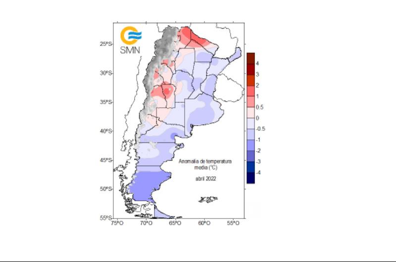 "Sobre el este y sur del país, abril 2022 fue normal a más frío que lo normal, con las anomalías de temperatura más negativas en el sur de Patagonia. En cambio, condiciones más cálidas de lo normal fueron las que predominaron en el extremo norte y noreste de la Argentina", subrayó.