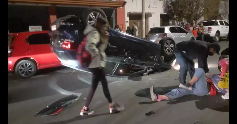 Un violento choque y vuelco que pudo haber ocasionado una tragedia ocurrió este lunes a la noche en pleno centro santarroseño.