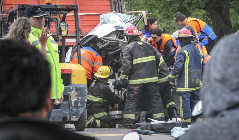 El conductor del rodado menor permaneció dentro del mismo y trabajaron bomberos, personal policial y del SEM para rescatarlo.