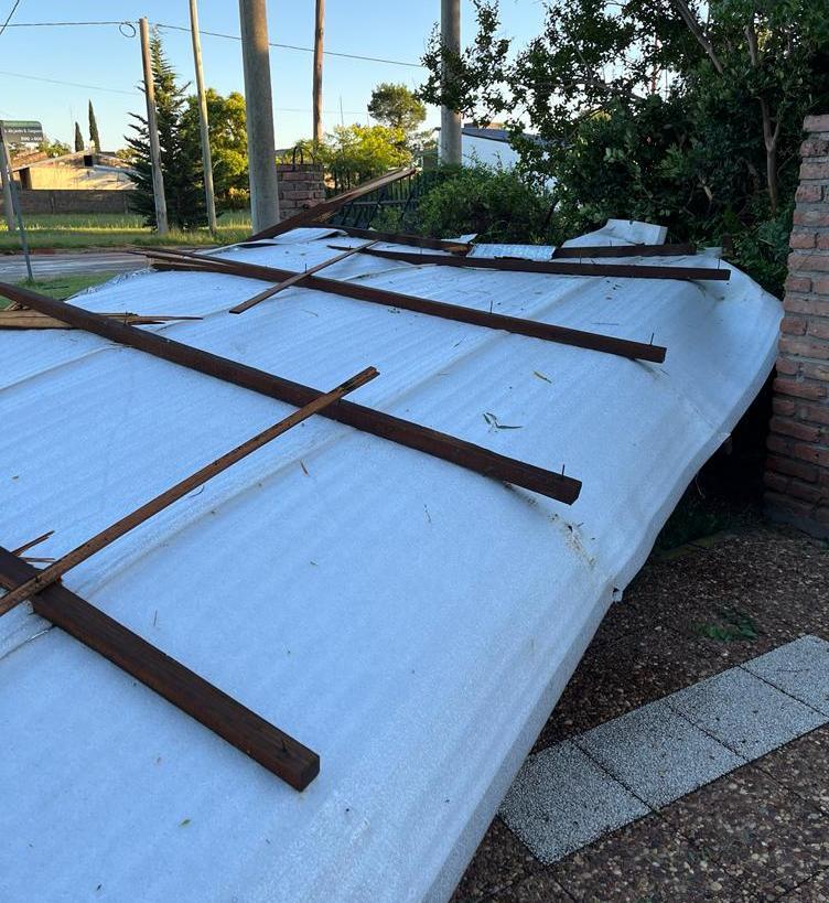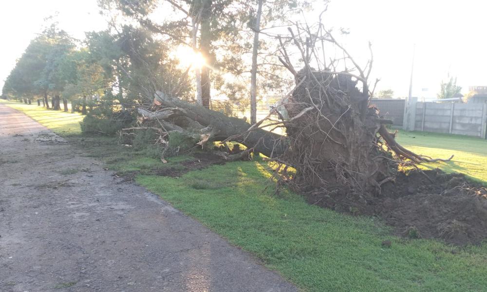En otros sectores del pueblo también hubo daños: postes del tendido eléctrico dañados, con las líneas del tendido eléctrico casi en el piso, y árboles arrancados de raíz.