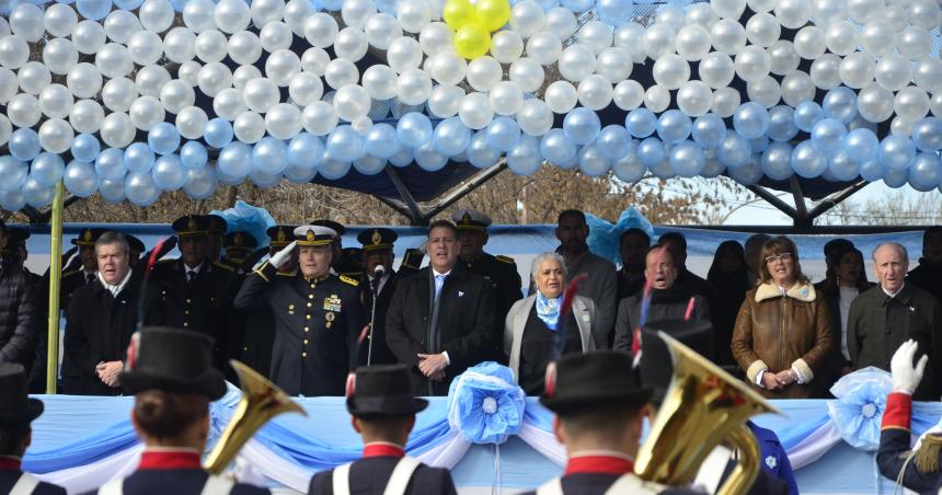 "Es un orgullo y enorme alegría estar visitándolos este día patrio. El gobernador Sergio Ziliotto no está presente por cuestiones personales, pero les traigo a la intendenta el total respaldo y confianza al equipo que han formado", expresó el ministro de Gobierno en el inicio de su discurso.