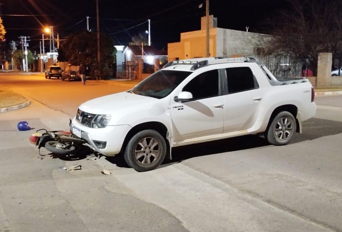 La pick-up circulaba por Roque Sáenz Peña de norte a sur y la motocicleta iba por 25 de Mayo de este a oeste.