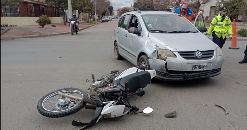 Otro siniestro vial protagonizado por un automóvil y una moto ocurrió en la mañana de este sábado en Santa Rosa. Fue en el cruce de las calles Autonomista y Valerga. No hubo heridos.