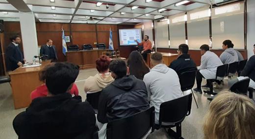 La primera de las actividades fue una charla con tres funcionarios, el fiscal Damián Campo, el juez de control Diego Ambrogetti y el defensor oficial Walter Vaccaro.