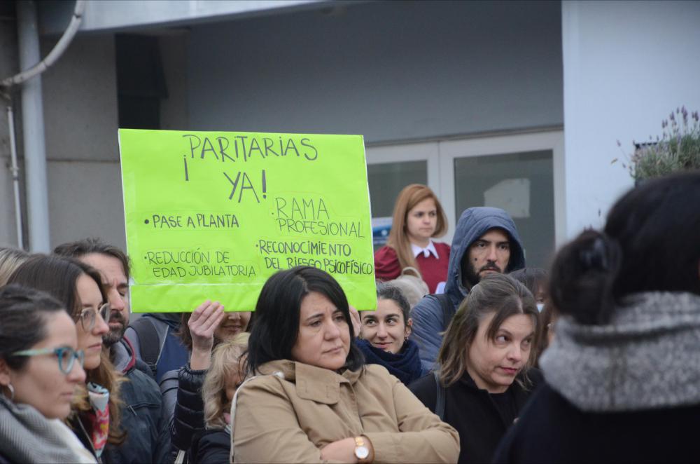 Reclaman reconocimiento de tareas, riesgo sicofísico, bajar la edad jubilatoria y el pase a planta de monotributistas, ya que, denunciaron, después del blanqueo de hace unos años se continuó con la práctica de contrataciones precarizadas.