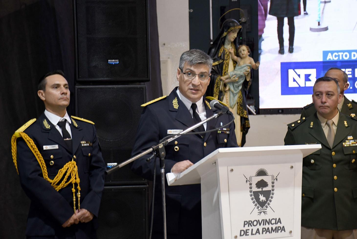El acto central fue encabezado por el ministro de Seguridad y Justicia, Horacio di Nápoli, y el jefe de Policía, Claudio Cano. Debido a las inclemencias climáticas, en esta ocasión no se pudo realizar el tradicional desfile que suele acompañar la conmemoración.