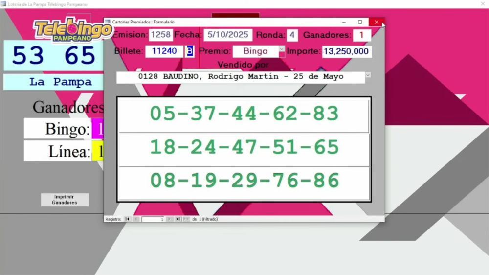 El Telebingo Pampeano entregó durante la noche del domingo un premio de $13.250.000 a un cartón vendido en 25 de Mayo.