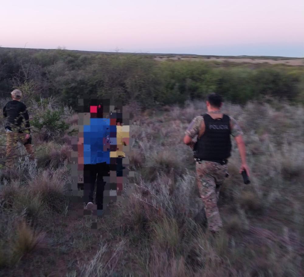 El personal ingresó a pie al monte del predio rural "El Mangrullo" y logró dar con las tres personas a las 19:45 horas, a unos mil metros del camino principal.
