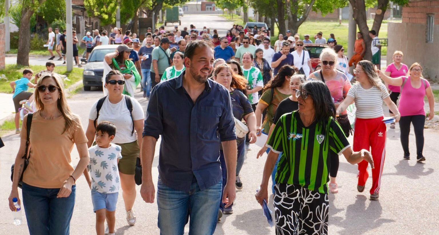 En una clara señal de unidad y movilización de la base, el intendente Luciano di Nápoli acompañó este lunes a la candidata a diputada provincial Lichi Marín en una multitudinaria caminata por el Barrio Matadero.