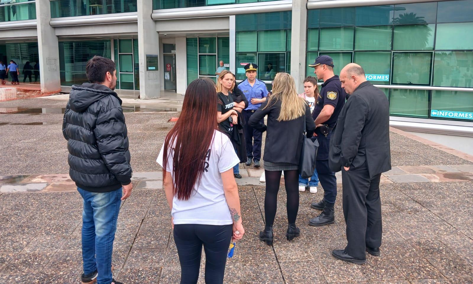 El incidente se produjo al culminar la audiencia. Primero salieron los familiares de Roldán y, momentos después, los familiares de Lía Falcón. En las escaleras del Centro Judicial, Alexia Roldán, la hija del imputado, se cruzó con Candela, una de las mejores amigas de la víctima.