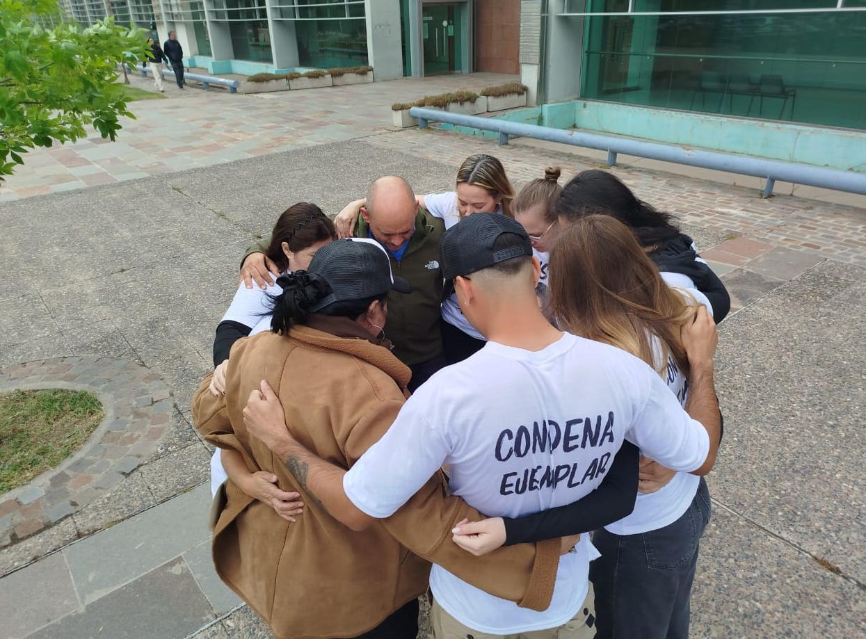 La familia de la víctima hizo un "abrazo simbólico" y quedó afuera. esperando. La audiencia es sin público luego de los incidentes del día anterior.