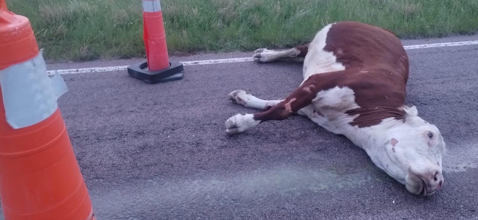Al arribar al lugar, los efectivos constataron que dos vehículos -una camioneta Toyota Hilux y un colectivo de pasajeros- habían impactado contra un vacuno que se encontraba suelto en la cinta asfáltica. El animal, que se habría escapado de un predio rural lindante, murió en el lugar.