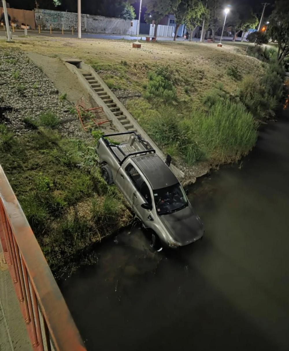 Según el parte policial, los ocupantes hicieron caso omiso a la orden de detener la marcha y emprendieron la huida por calle San Martín, continuando luego por calle Española y aumentando la velocidad en dirección a los puentes internos que comunican con La Adela. Al llegar a ese sector, el conductor perdió el control del vehículo y se despistó, quedando al borde del río con daños en los neumáticos delanteros.