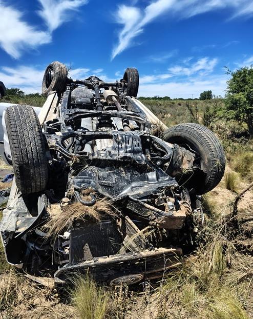 El Comisario Mayor Bustos Paulino, a cargo de la Coordinación Zona Oeste de la Policía de La Pampa, confirmó que se trató del vuelco de una camioneta pick-up 0 kilómetro, la cual quedó invertida sobre la banquina Este.