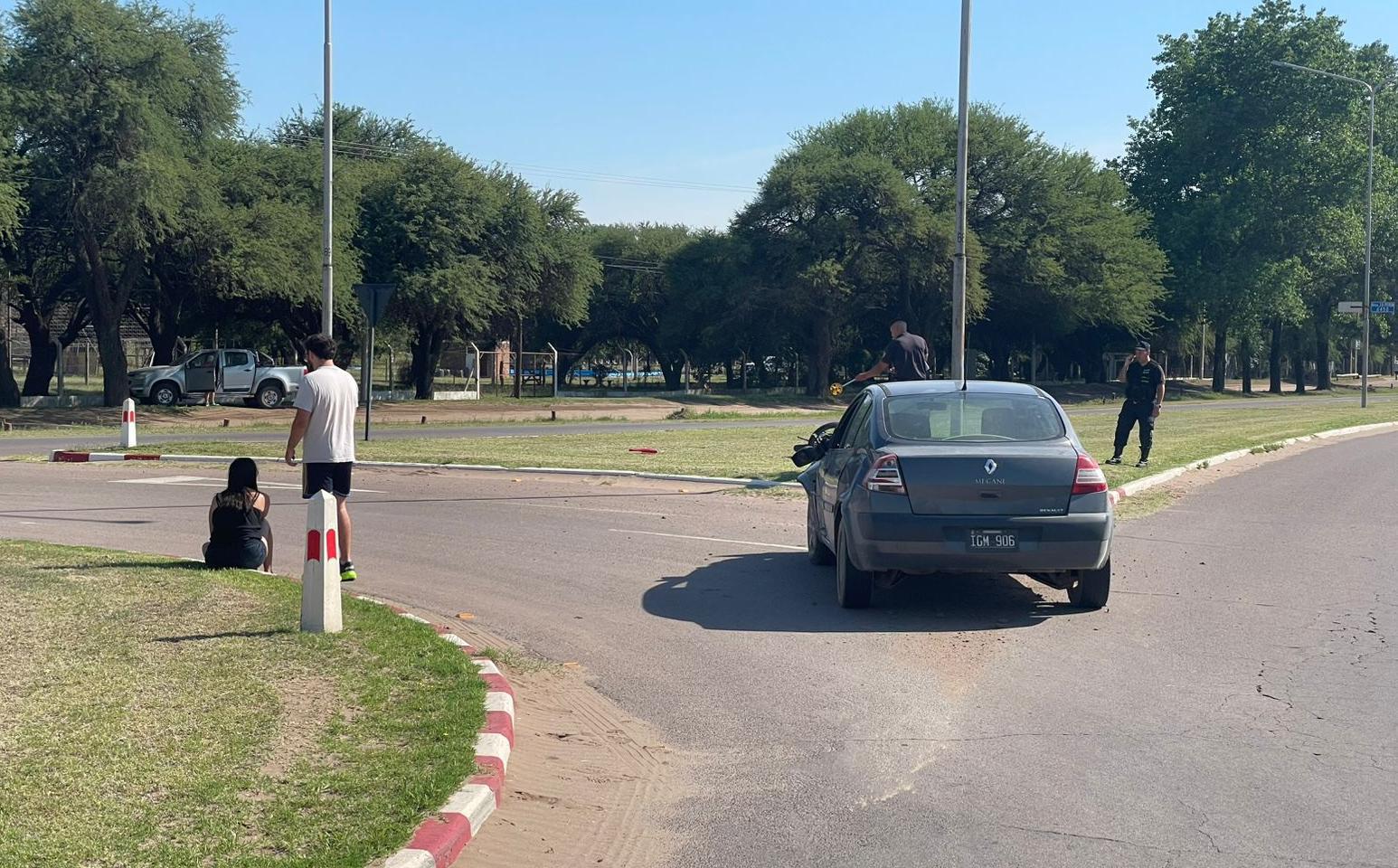 El rodado menor, una Motomel S2, impactó contra el costado izquierdo del automóvil, a la altura del paragolpes delantero.
