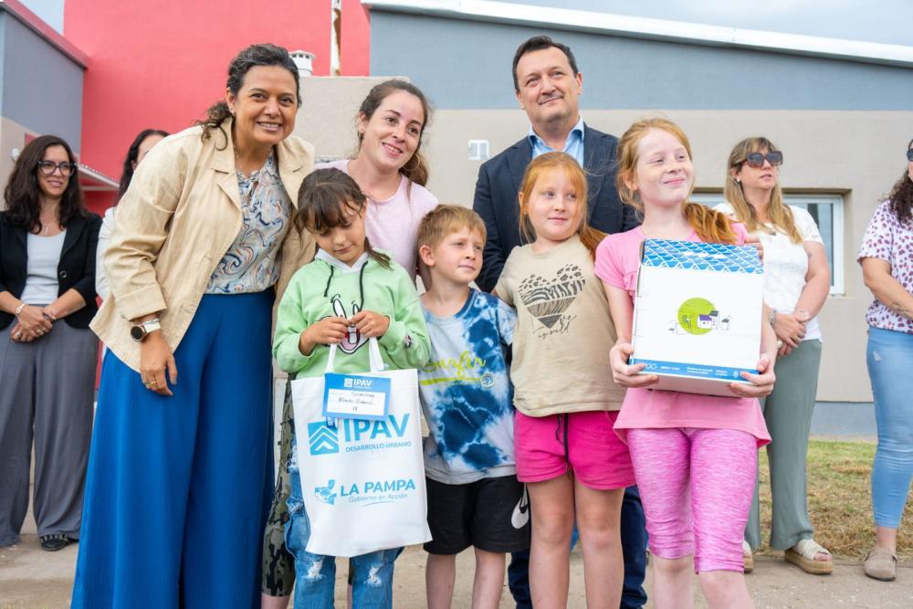 Del acto de entrega de viviendas, participaron las familias adjudicatarias, el intendente de Guatraché, Sergio Arrese, la titular del IPAV, Erica Riboyra, concejales , concejalas, gerentes del Instituto Provincial Autárquico de Vivienda.