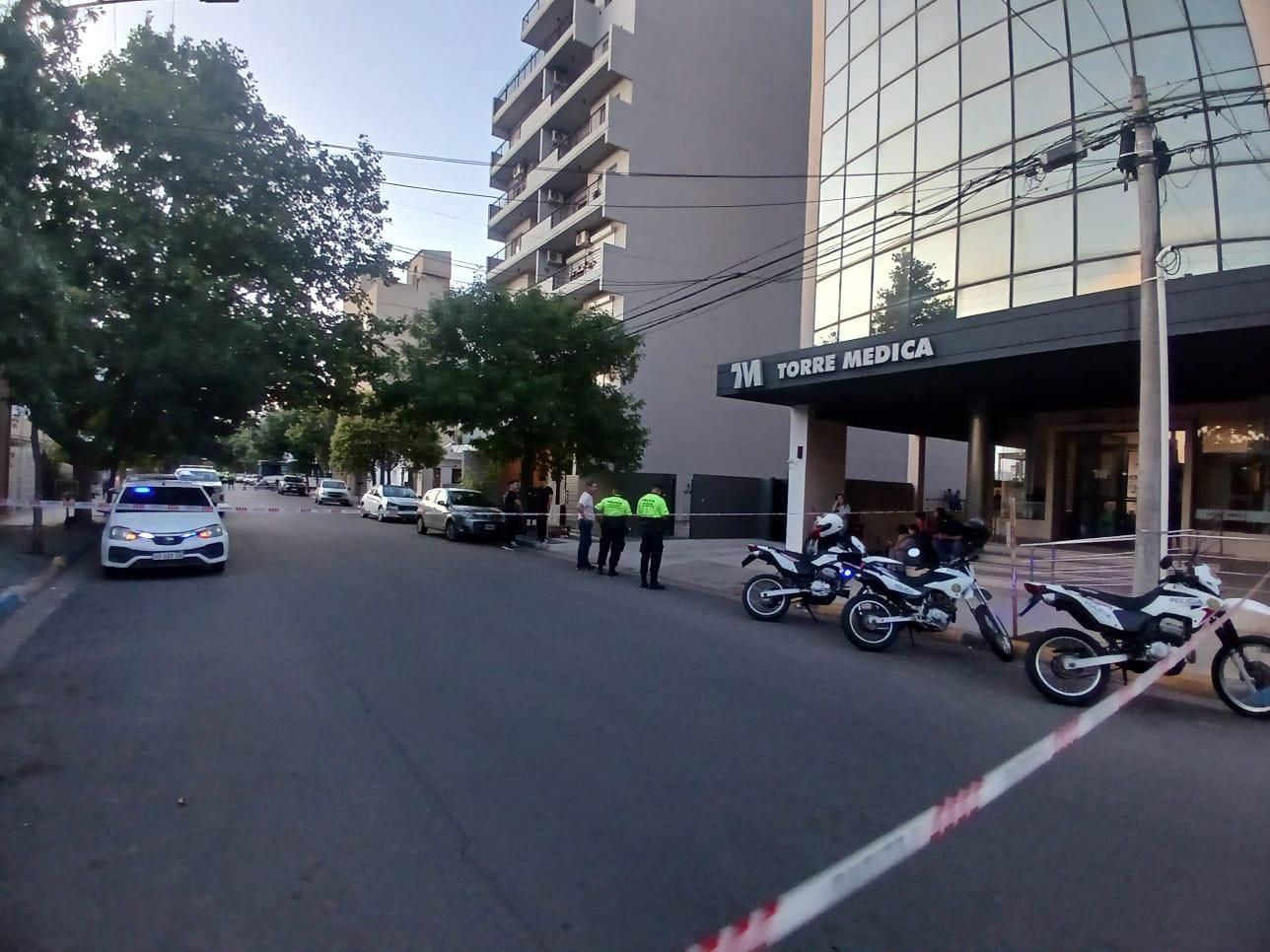 El incidente se registró en el conocido edificio ubicado en la zona céntrica, y generó gran consternación entre los transeúntes y profesionales que se encontraban en el lugar.