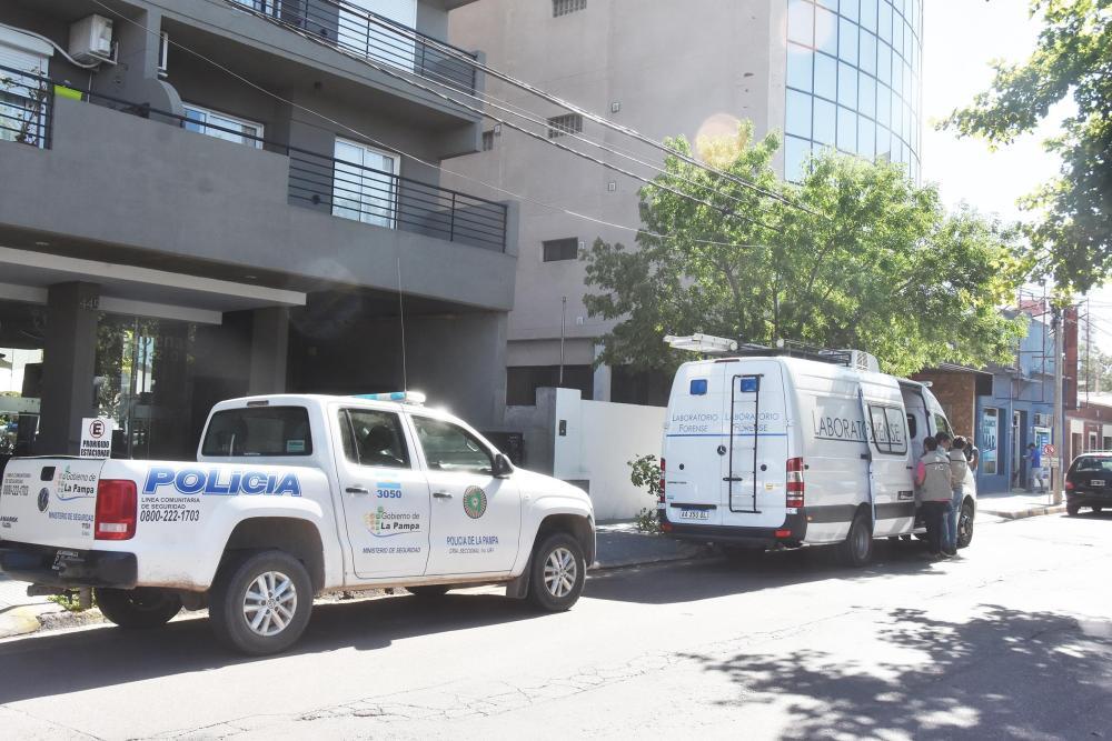 Personal de la Policía de La Pampa y de la Agencia de Investigación Científica (AIC) trabajaron en el patio y las inmediaciones para realizar las pericias correspondientes y determinar las circunstancias exactas del hecho.
