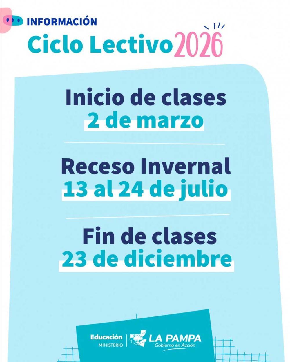 Por último, la finalización de las clases en la provincia de La Pampa está prevista para el día 23 de diciembre de 2026.