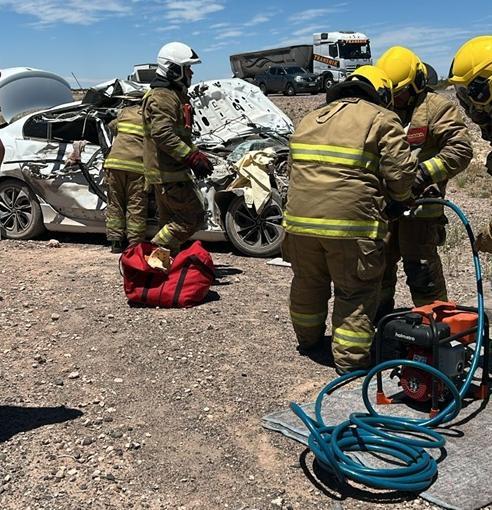 Debido a la violencia del choque, se activó de urgencia el protocolo de asistencia. Personal de bomberos y sanitario trabajó en el lugar para asistir a los ocupantes de ambos vehículos, principalmente al automovilista que quedó atrapado en el habitáculo.