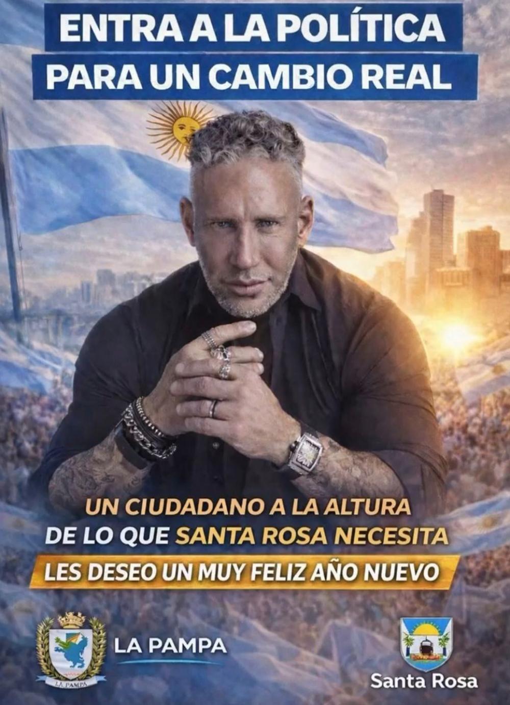Con la leyenda "Entra a la política para un cambio real", tiene una bajada que dice: "Un ciudadano a la altura de lo que Santa Rosa necesita".