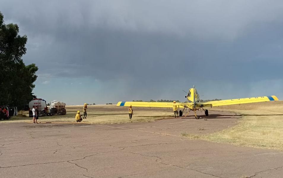 El operativo para combatir el incendio rural en cercanías de Jacinto Arauz sumó un refuerzo clave. Debido a la persistencia del fuego en el predio "La Blanca", ubicado a 20 kilómetros al sudoeste de la localidad, el Servicio Nacional de Manejo del Fuego envió un avión hidrante para colaborar con las brigadas terrestres.
