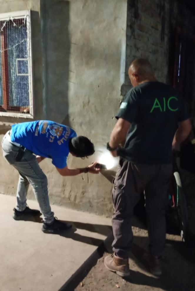 Allí se dio intervención a la Agencia de Investigación Científica (AIC) que recolectó cuatro casquillos de bala, calibre 9 mm.. En horas del mediodía este lunes con una orden judicial se realizó un allanamiento en la calle Catriel al 900, en busca del arma, con resultado negativo.