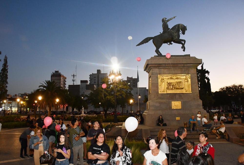 Antes de liberar los globos, la madre de Lía, acompañada por su familia, leyó una carta recordando todas las situaciones que atravesaron durante este año de lucha que aún continúa.