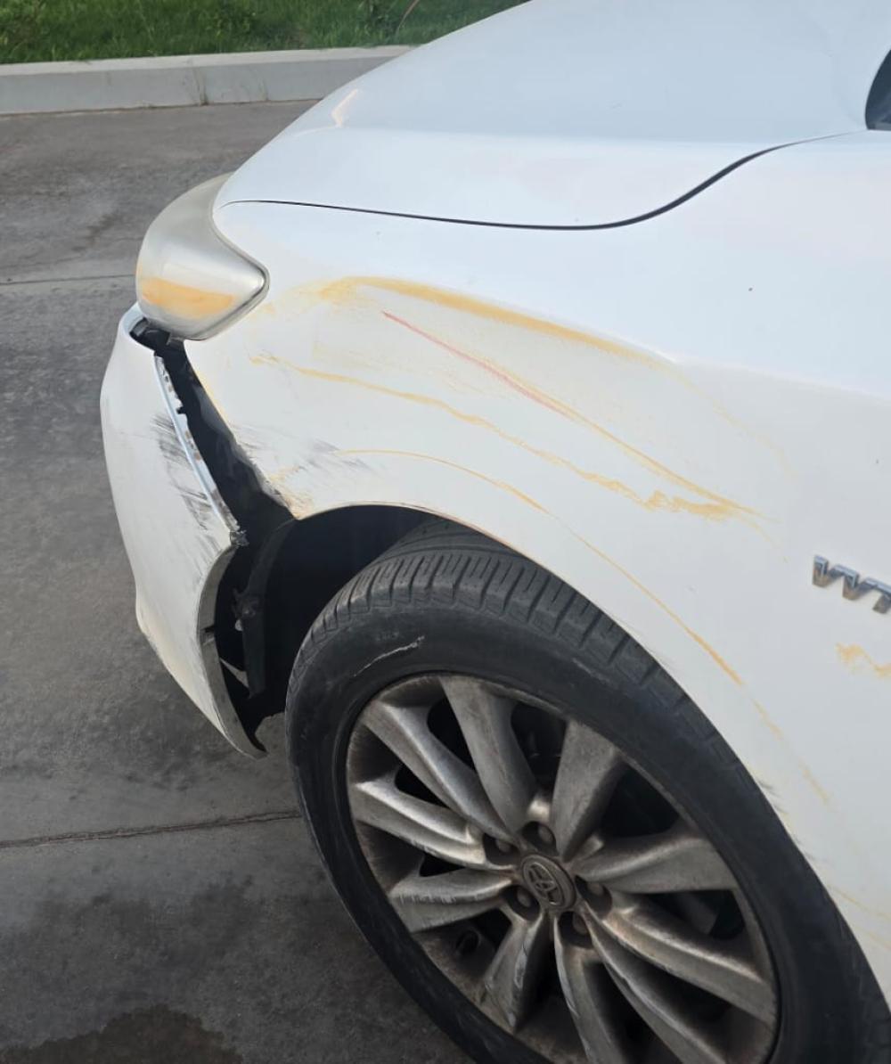Según pudo saber El Diario de La Pampa, el hecho ocurrió este lunes en la calle Tello, casi en la intersección con la avenida Illia. De acuerdo con lo reconstruido, el Jeep de color naranja rozó el lateral de un Toyota Corolla que estaba estacionado y le provocó daños en la pintura, además de la rotura de un espejo y del paragolpes delantero del lado izquierdo.