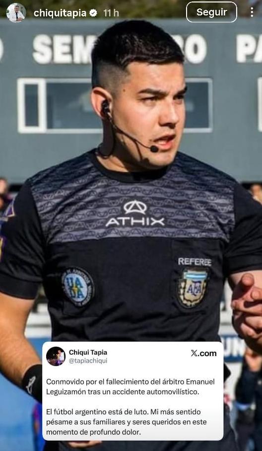 El propio presidente de la Asociación del Fútbol Argentino, Claudio "Chiqui" Tapia, utilizó sus redes sociales para manifestar su dolor: "El fútbol argentino está de luto. Estoy conmovido. Mi más sentido pésame a sus familiares y seres queridos en este momento de profundo dolor", escribió el dirigente, reflejando el impacto de la noticia en la calle Viamonte.