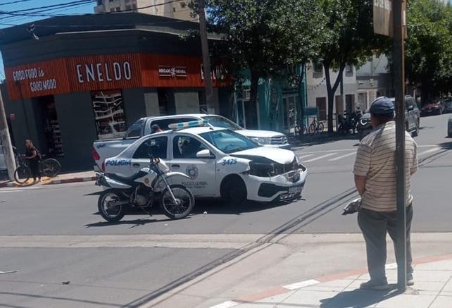 Este sábado se registró un choque en la intersección de las calles 25 de Mayo y Lisandro de la Torre, en Santa Rosa. El incidente fue protagonizado por un móvil de la Policía de La Pampa y un automóvil particular, generando una interrupción momentánea en el flujo vehicular de la zona.