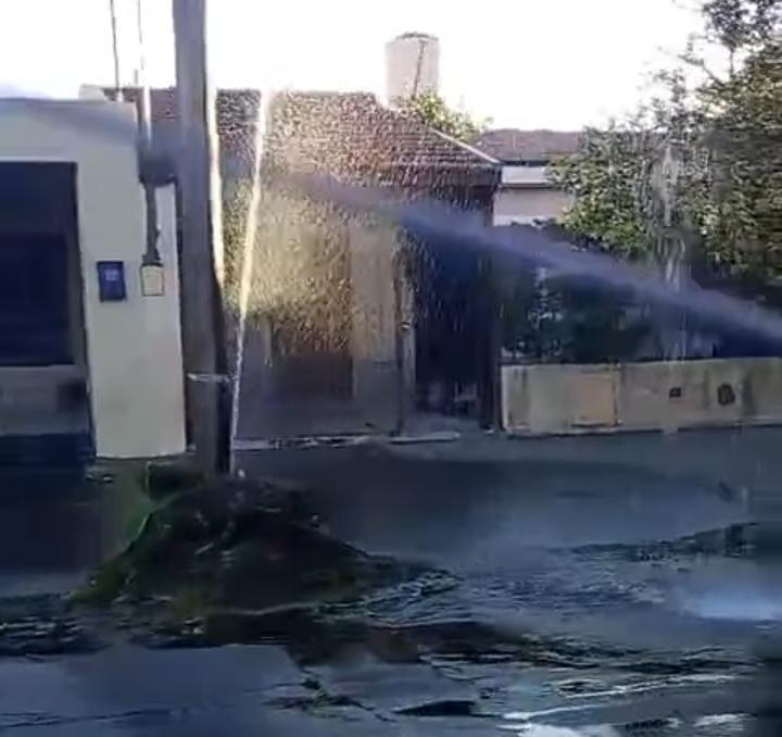 Allí, por una rotura de un caño, este lunes por la mañana se pudo observar un gran chorro que surgía con fuerza frente a una de las viviendas.